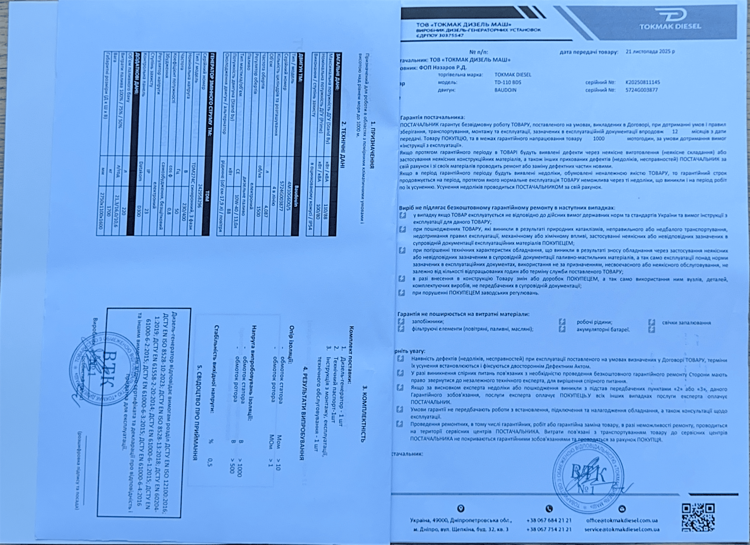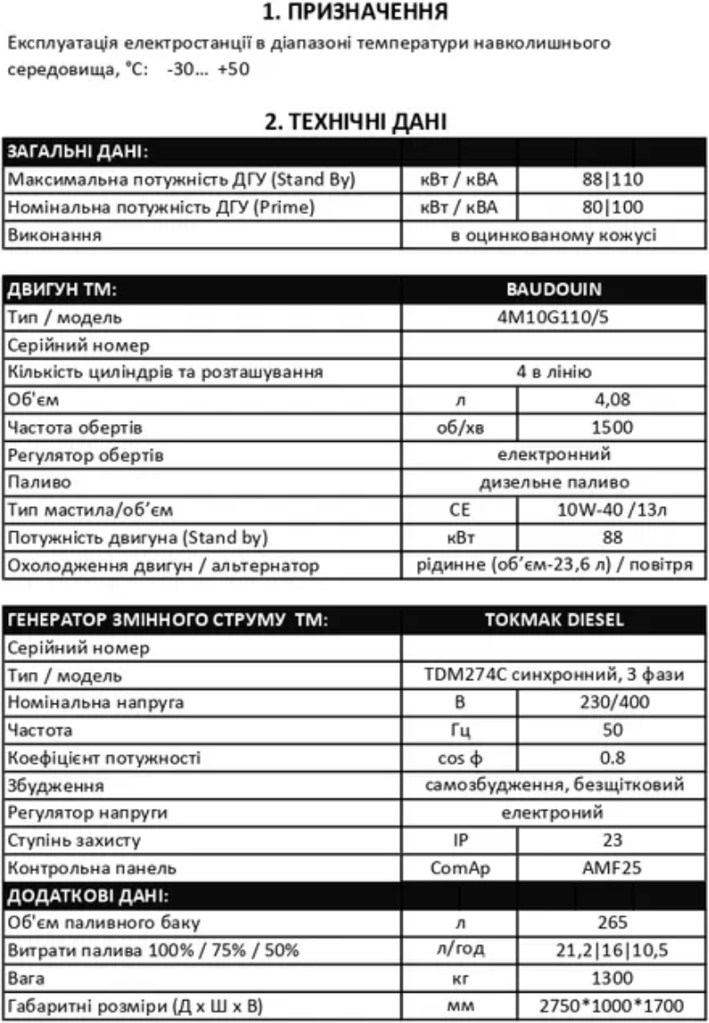 Генератор з двигуном TM “Baudouin” від Baudouin Moteurs, Франція.