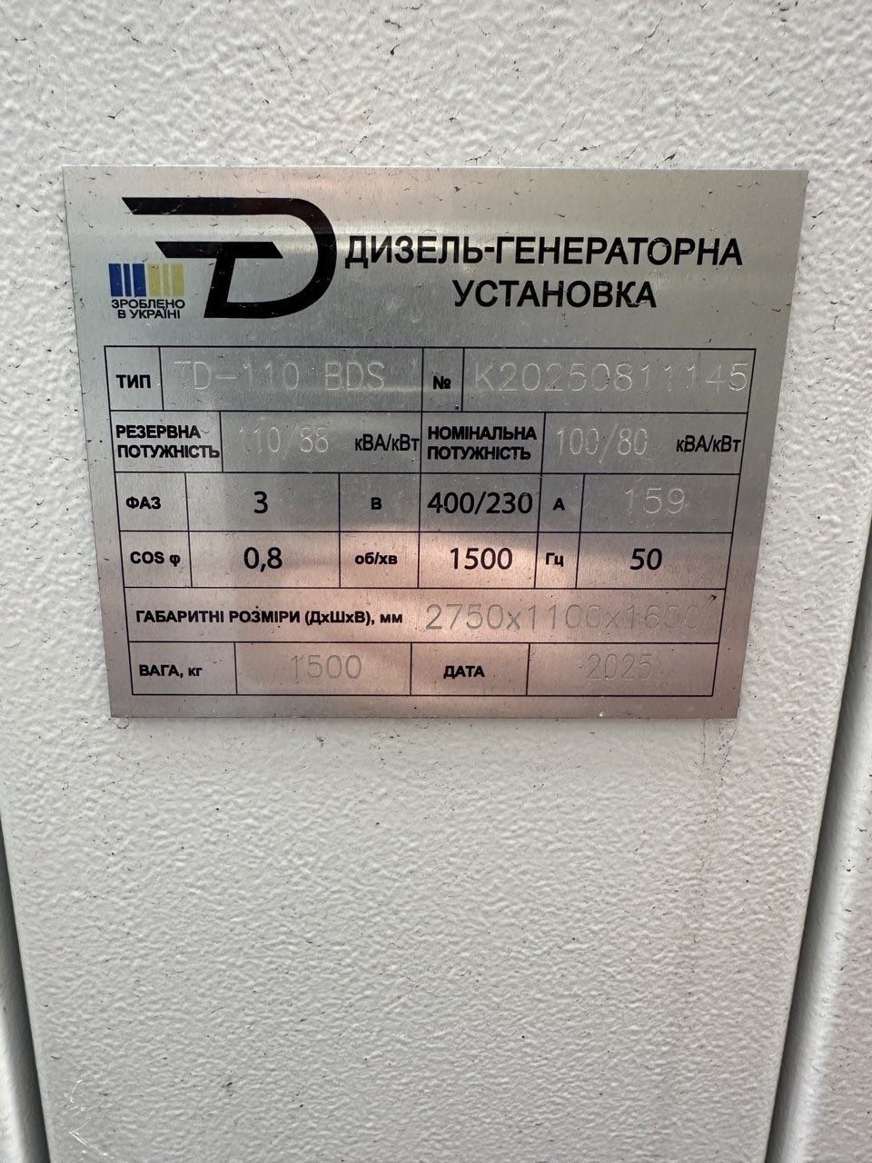 Тип генератора: дизельний